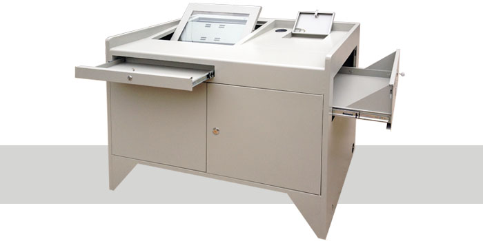 (2)講台內(nèi)部可(kě)放(fàng)置δ&電(diàn)腦(nǎo)主機(jī)、可(kě)放(fàng)置17寸-24寸液晶顯示器(qì)、中控、實物(wù)展台、功放(fàng)、電(diàn>£€£)源插座等設備,顯示器(qì)上(shà÷↓™ng)配有(yǒu)8mm鋼化(huà)玻璃,堅固且β∞•防灰塵。